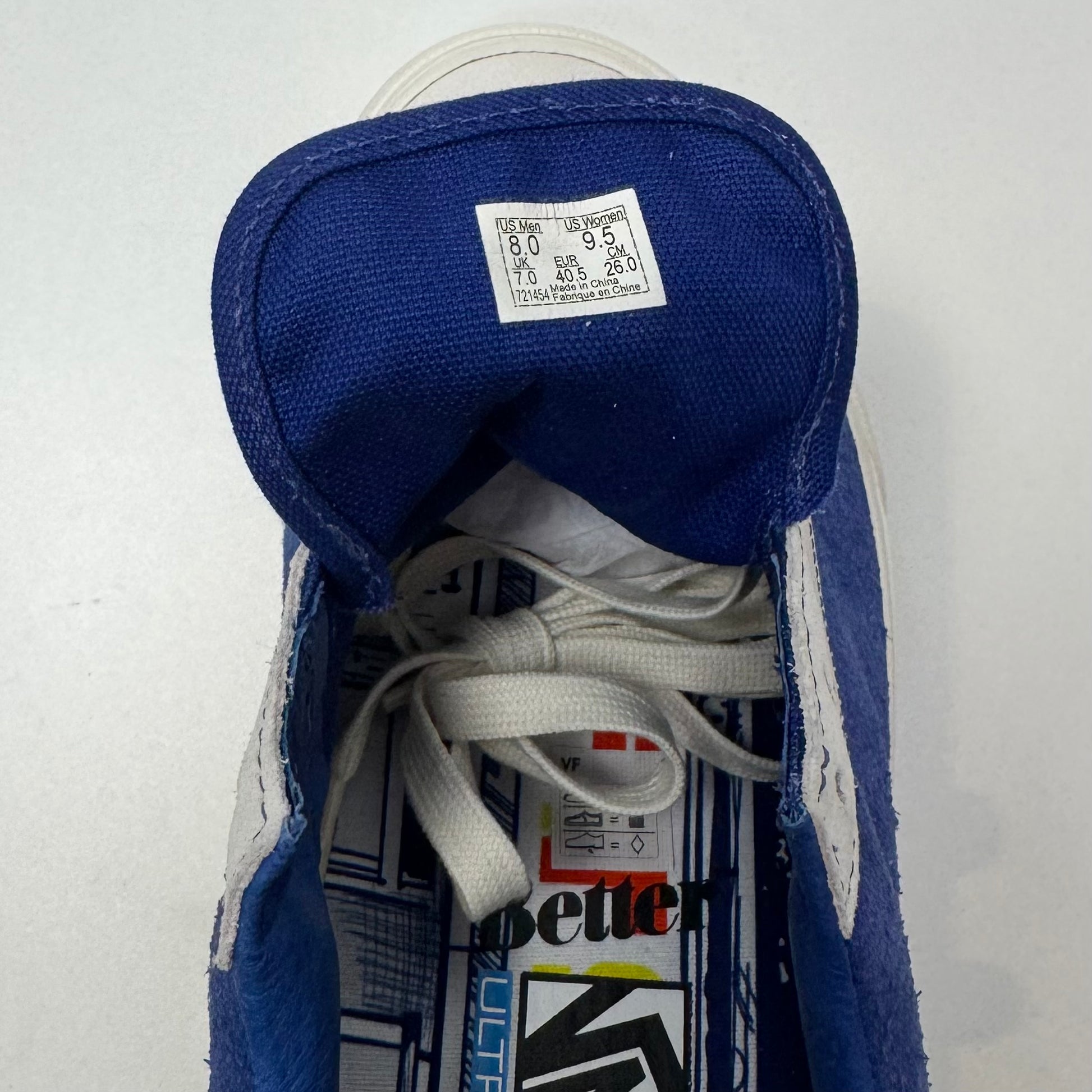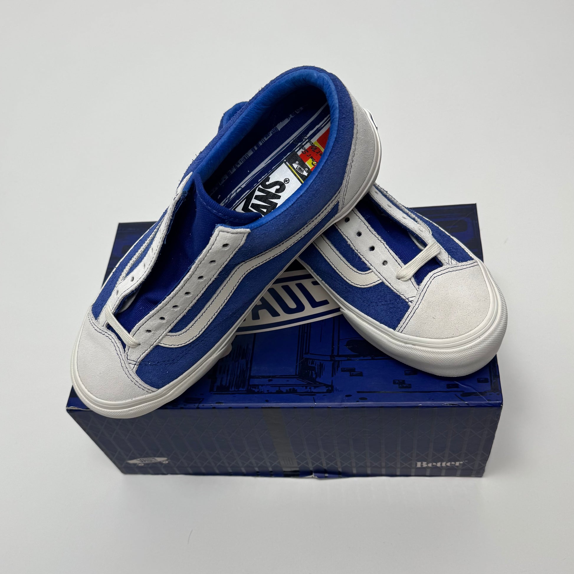 Better Gift Shop x Vans Style 36 shoes in blue and white.