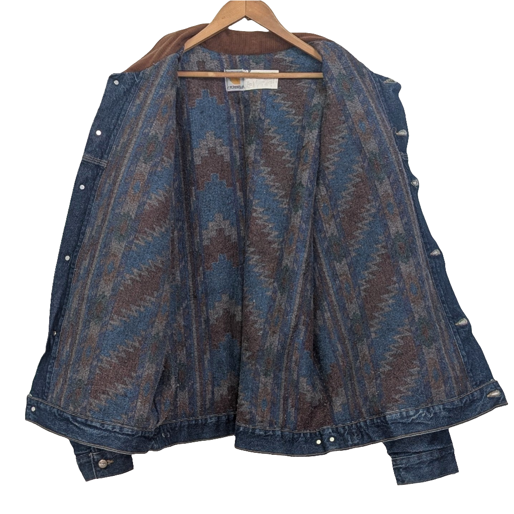 Carhartt denim jacket with blanket lining Aztech pattern.