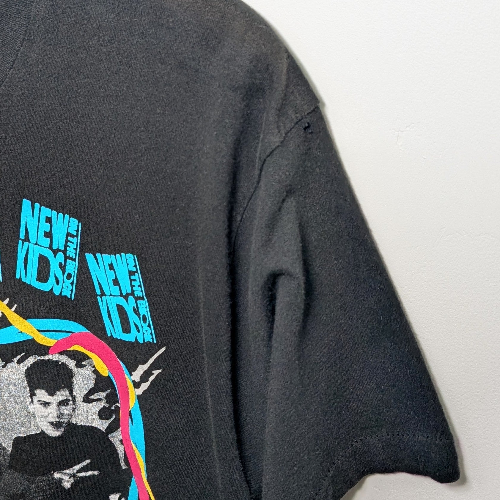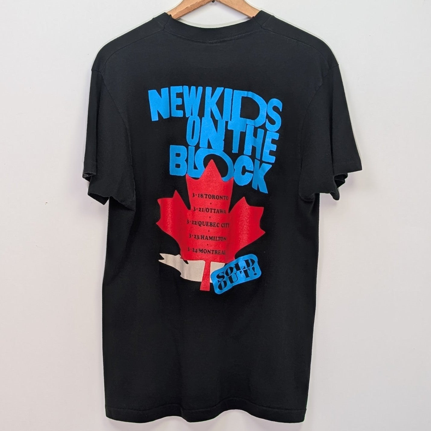 There are holes on the left arm and light fading throughout. It is a single stitch and was made in Canada of 100% cotton. On a fruit of the loom tag.