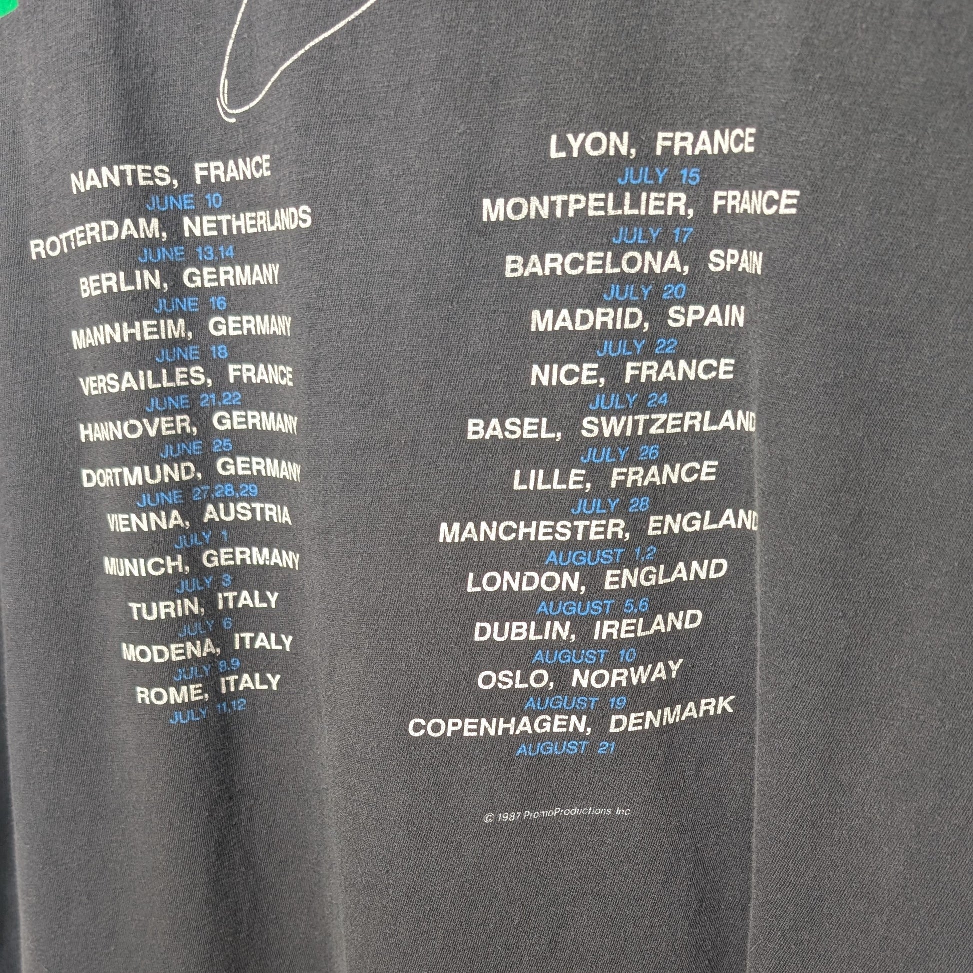 Perfectly faded with a couple of pinholes on the front and some cracking in the print. There is some glue on the bottom hem, please see photos. Overall excellent condition for the age.