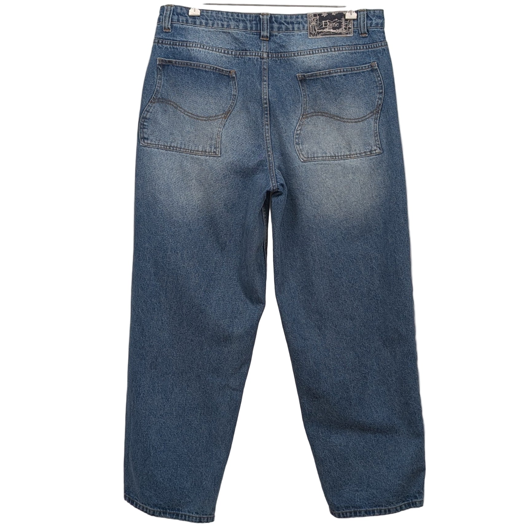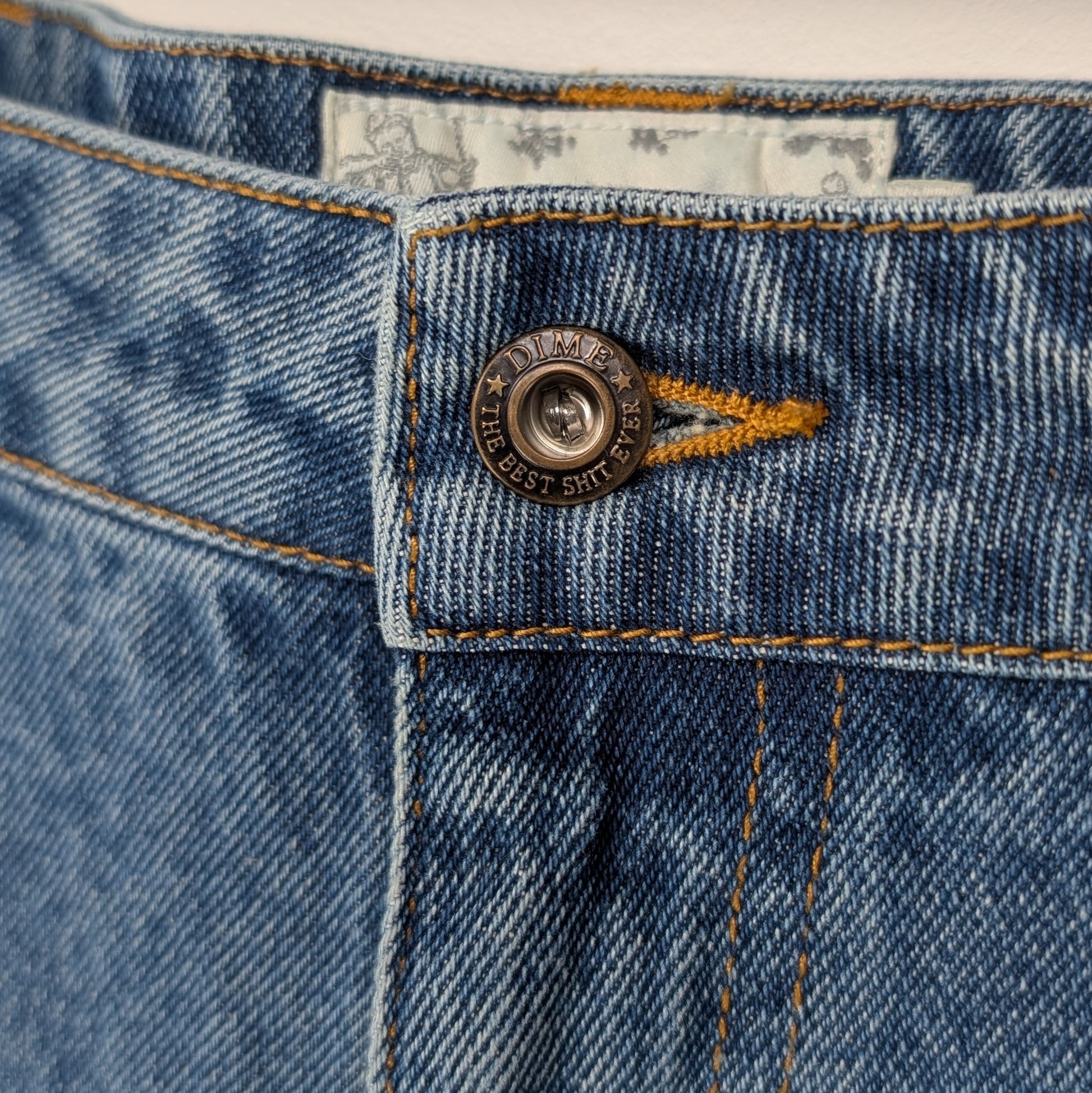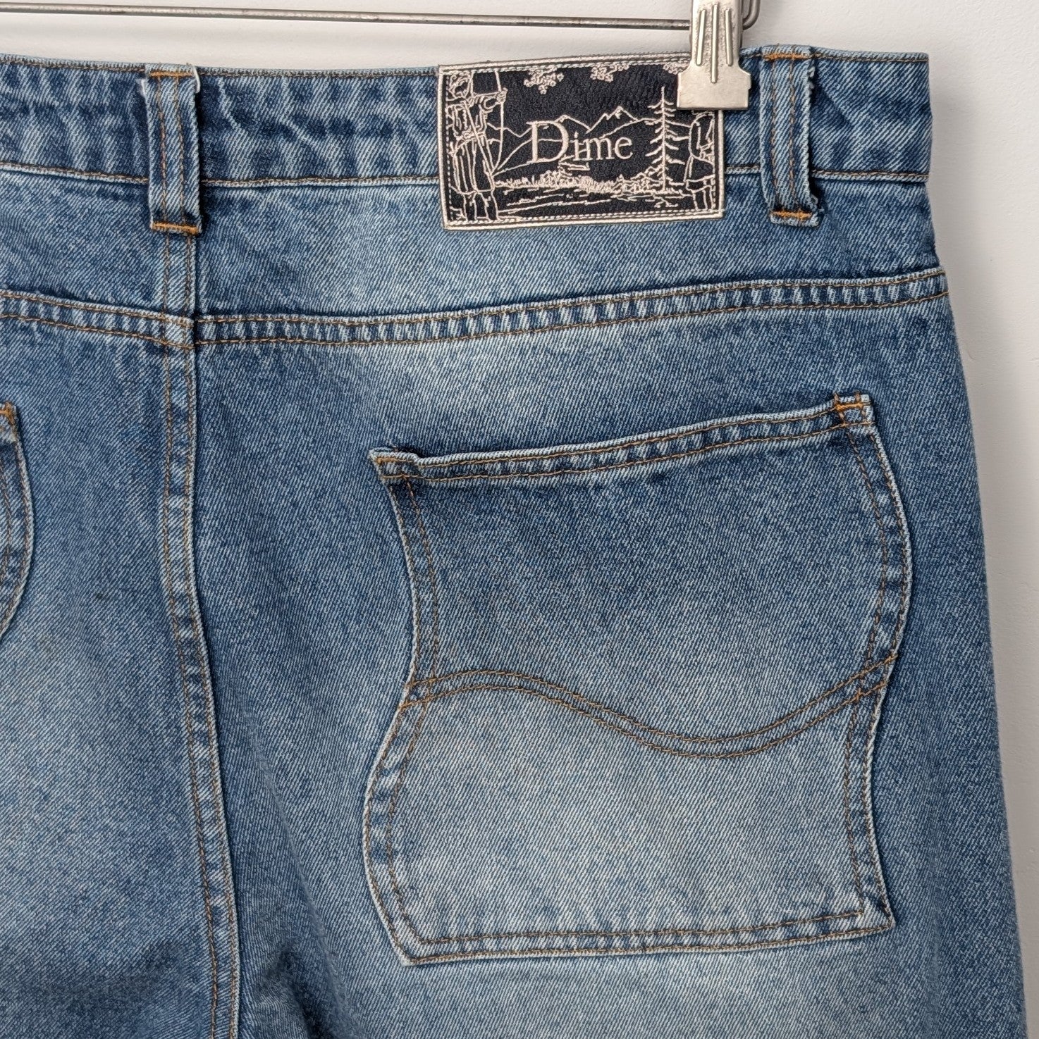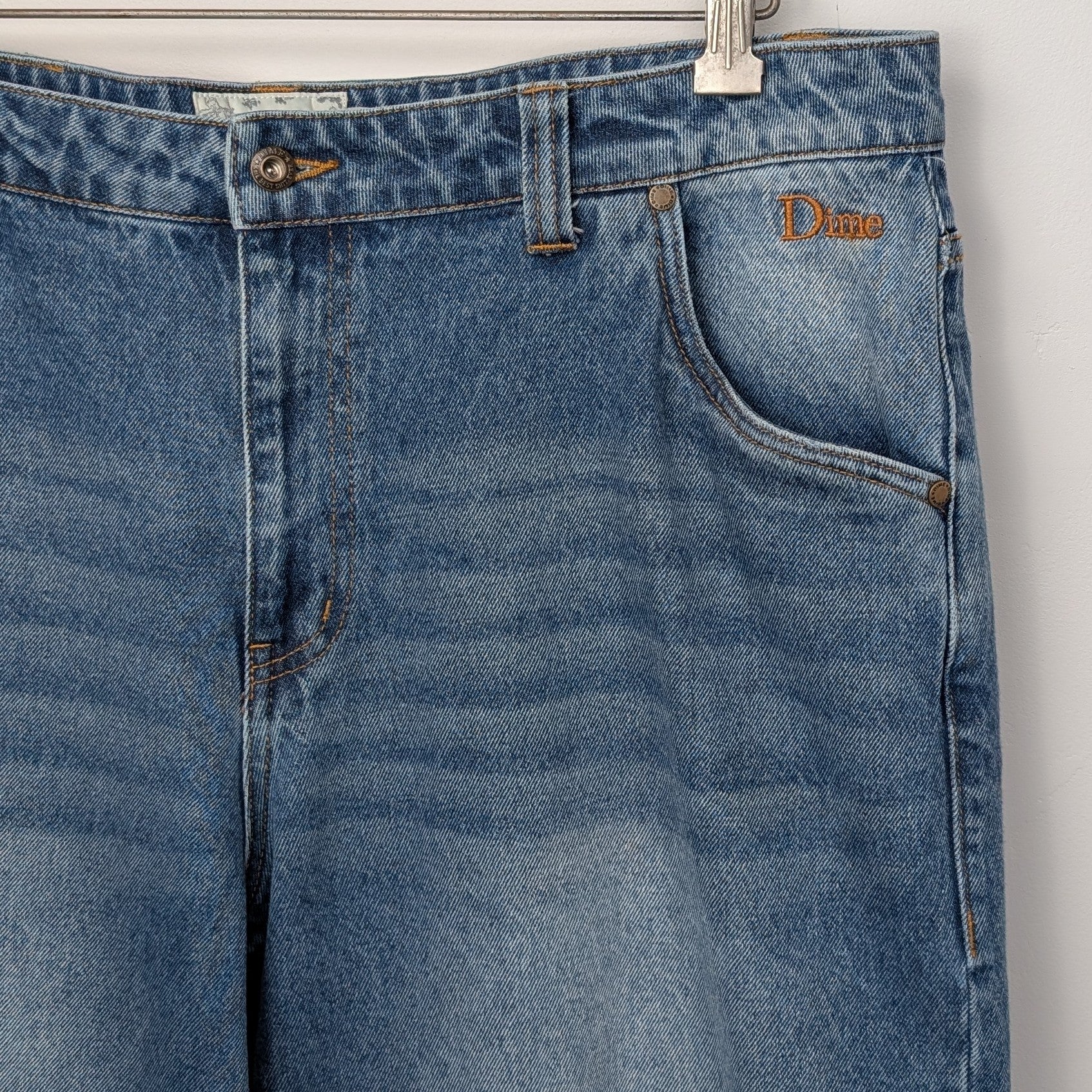 Measures 19" across the waist, 12" along the rise, 32" along the inseam and 9.5" leg opening.