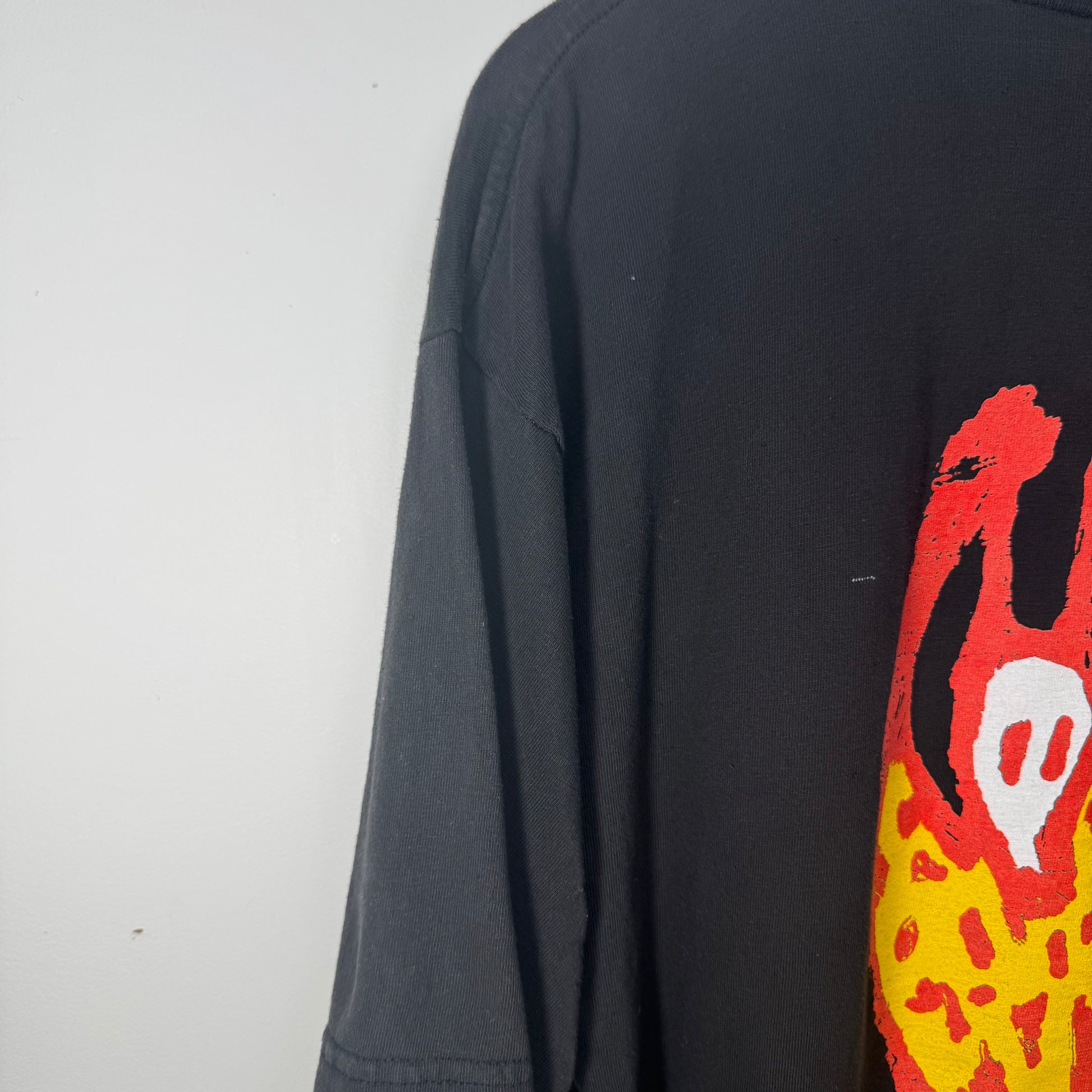 Small hole in the back near the neck and light fading throughout but overall it is in great condition.