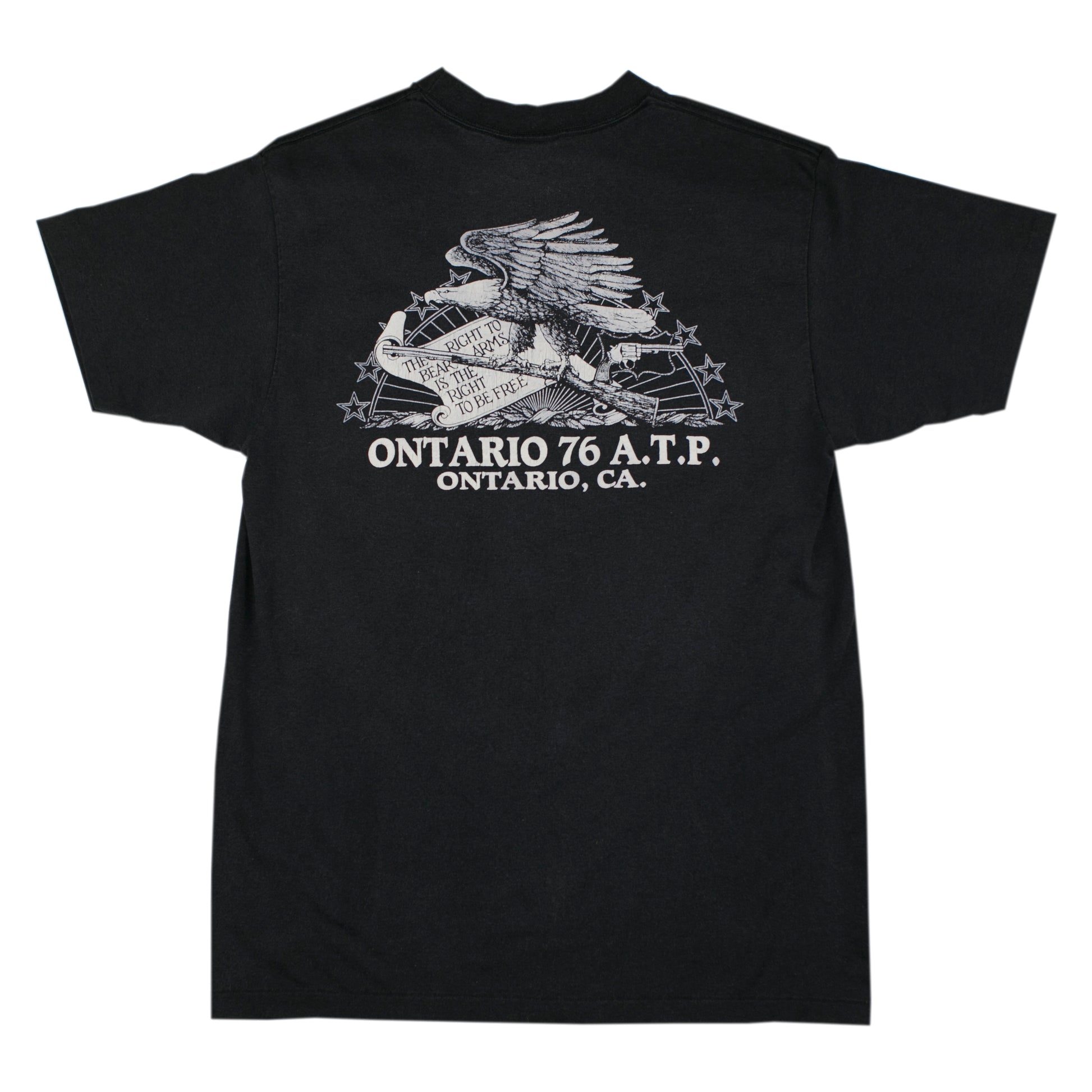 There is some fading throughout and a little cracking in the graphic. Overall it is in extremely good condition and ready to wear.