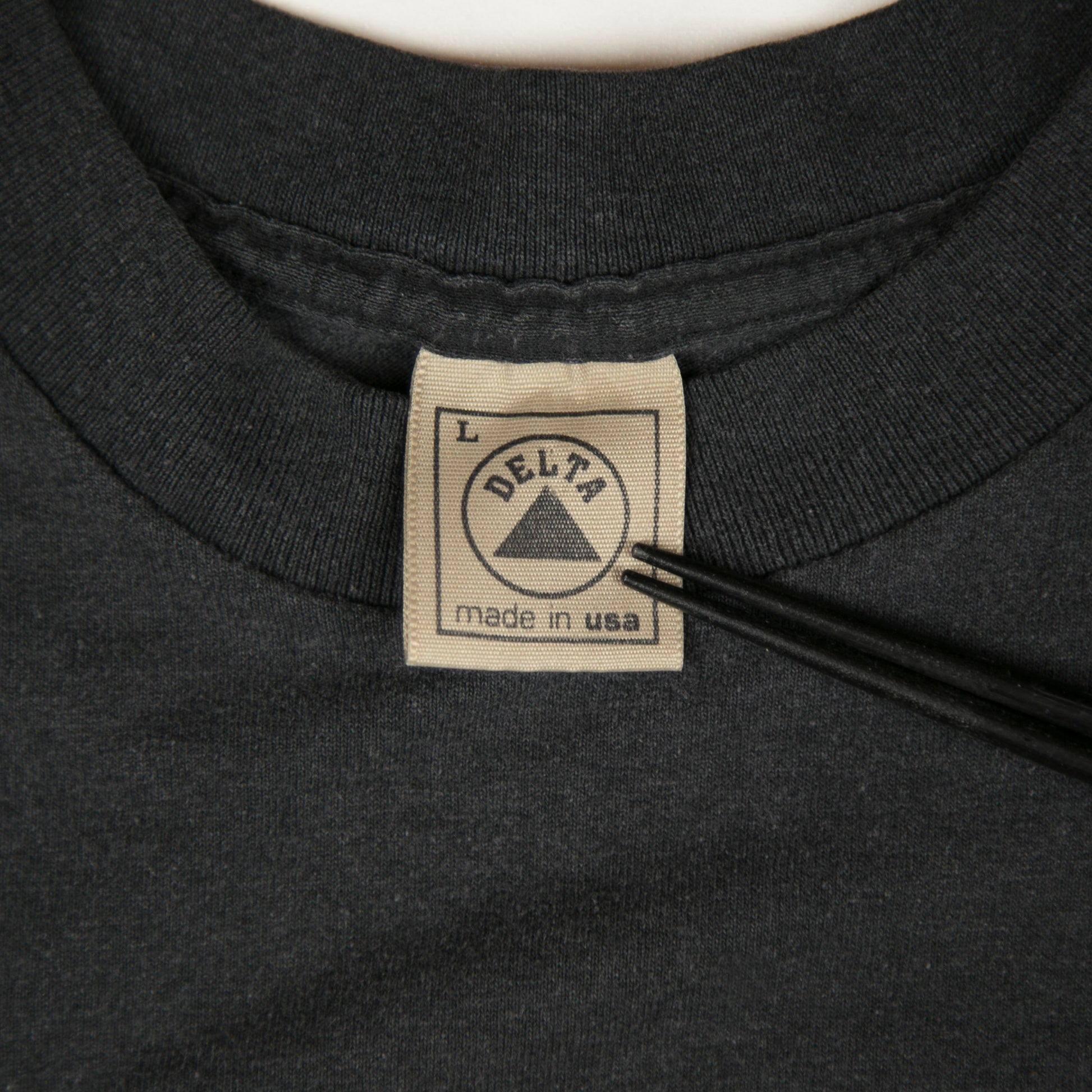 Tag size large and it was made in the USA and printed on a delta beige tag.