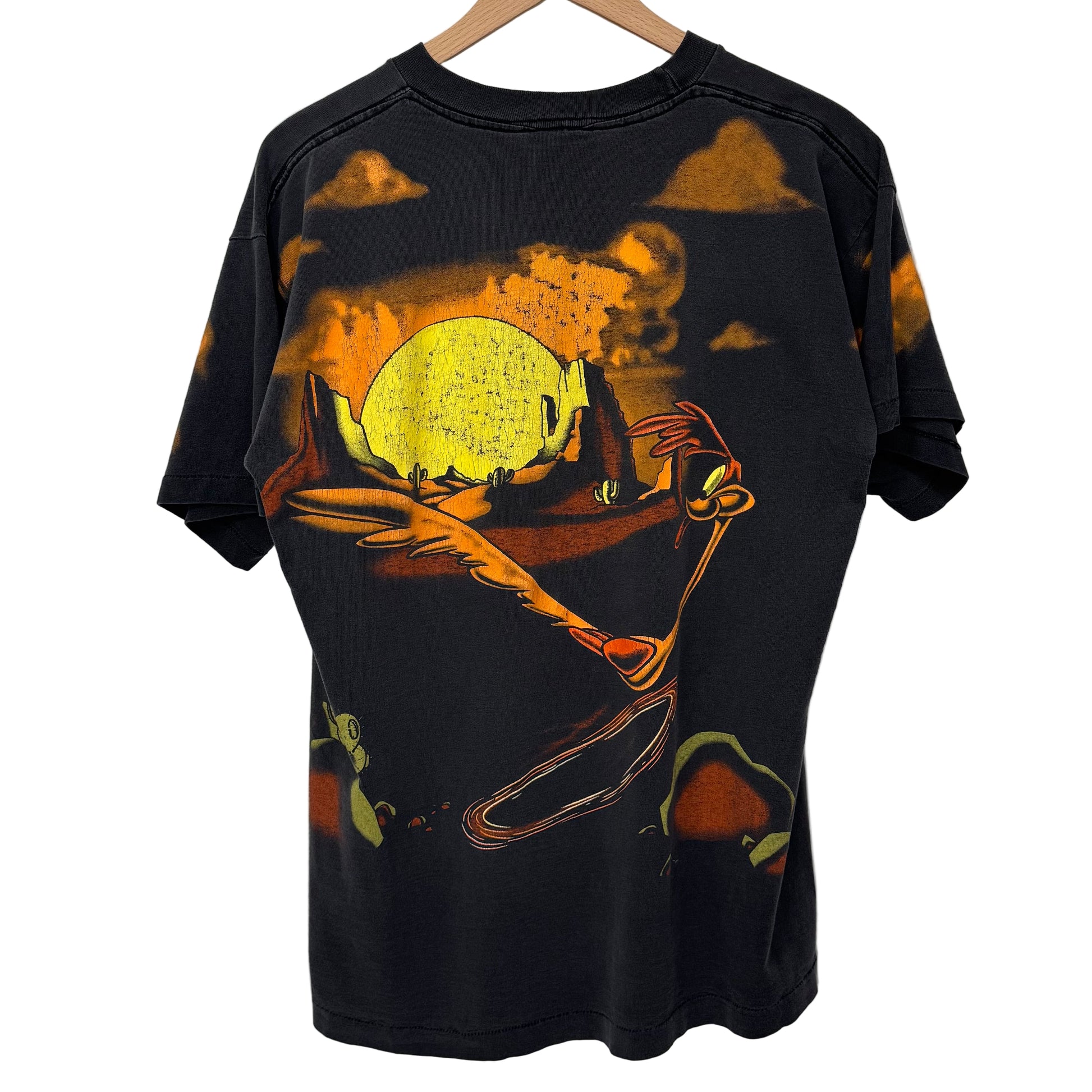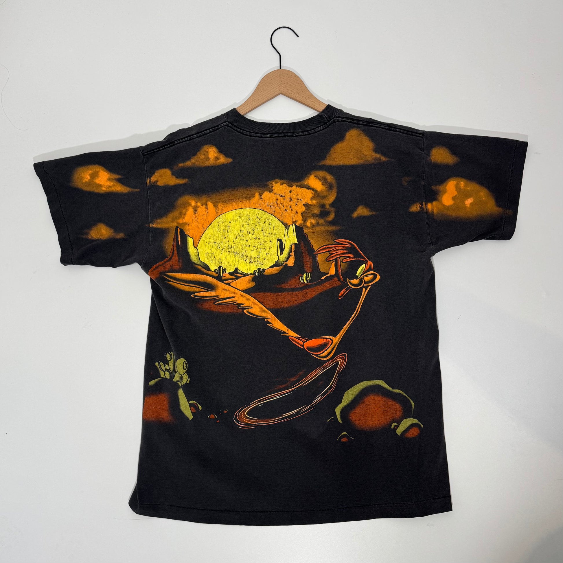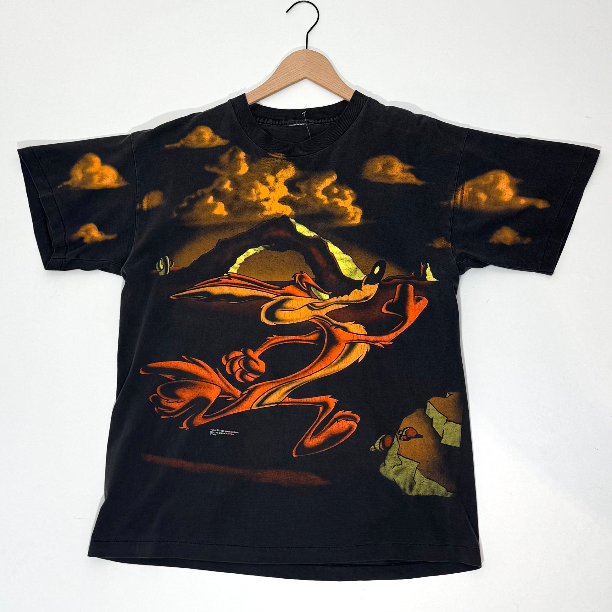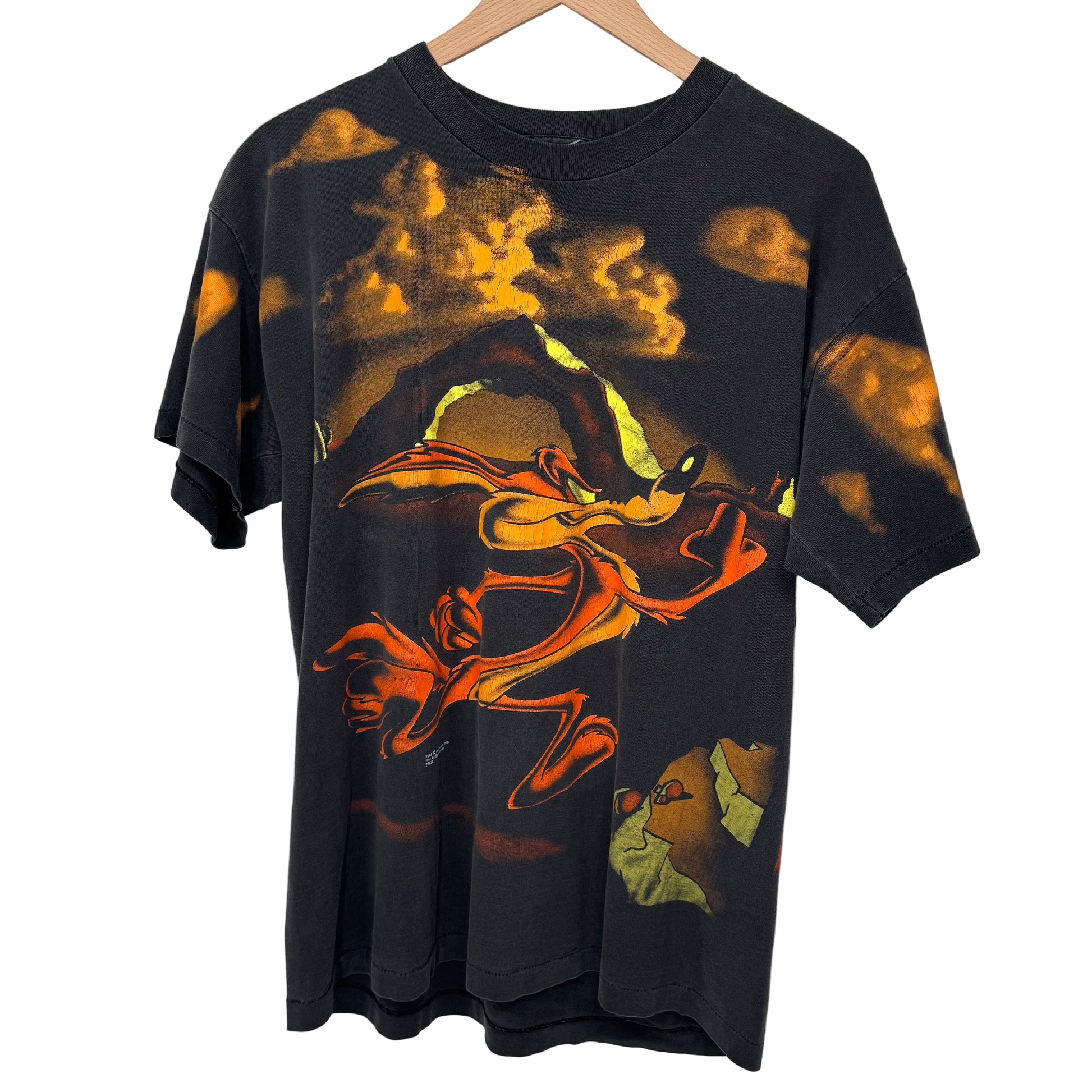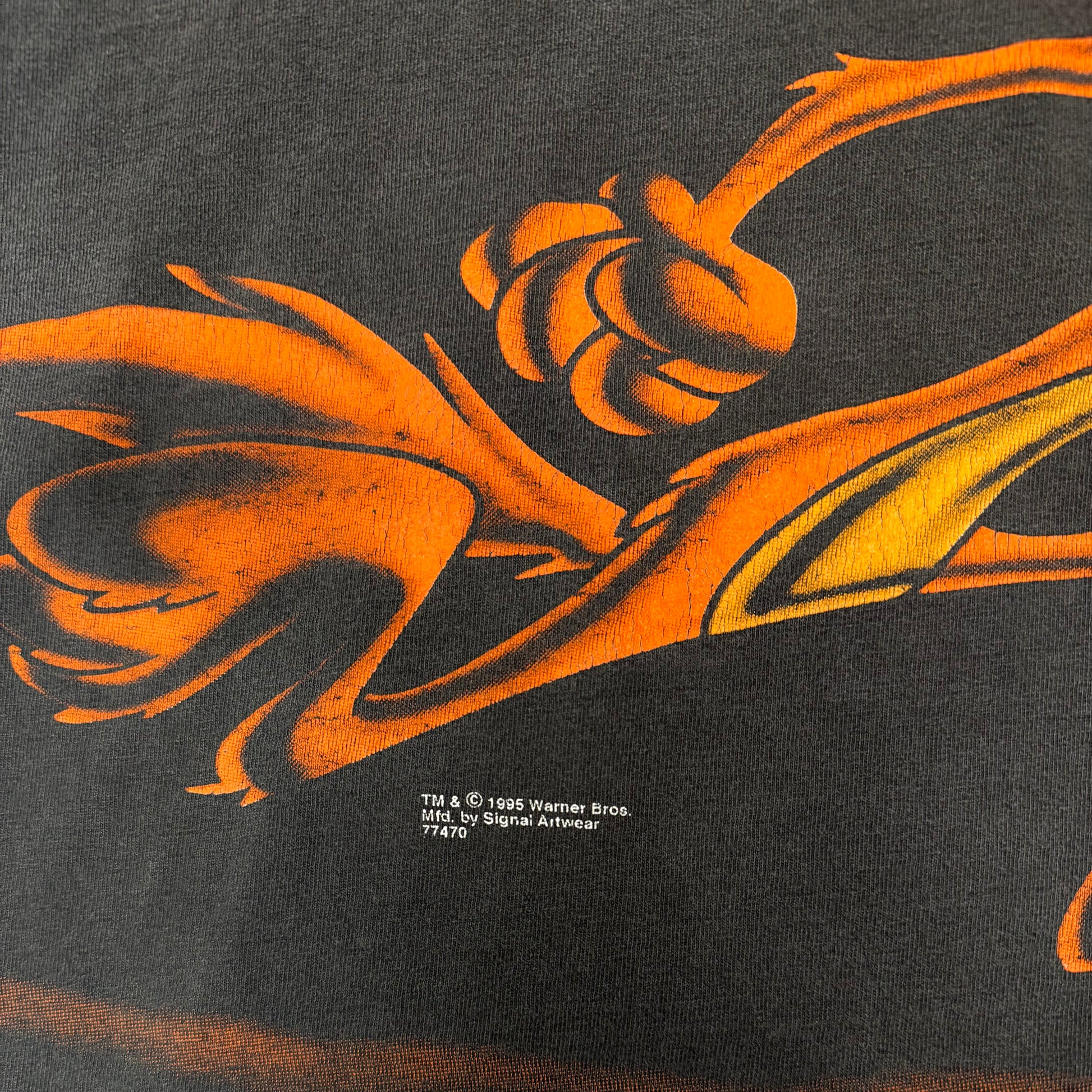 Fits like a men's size large and it is a single stitch which was probably made in the USA.