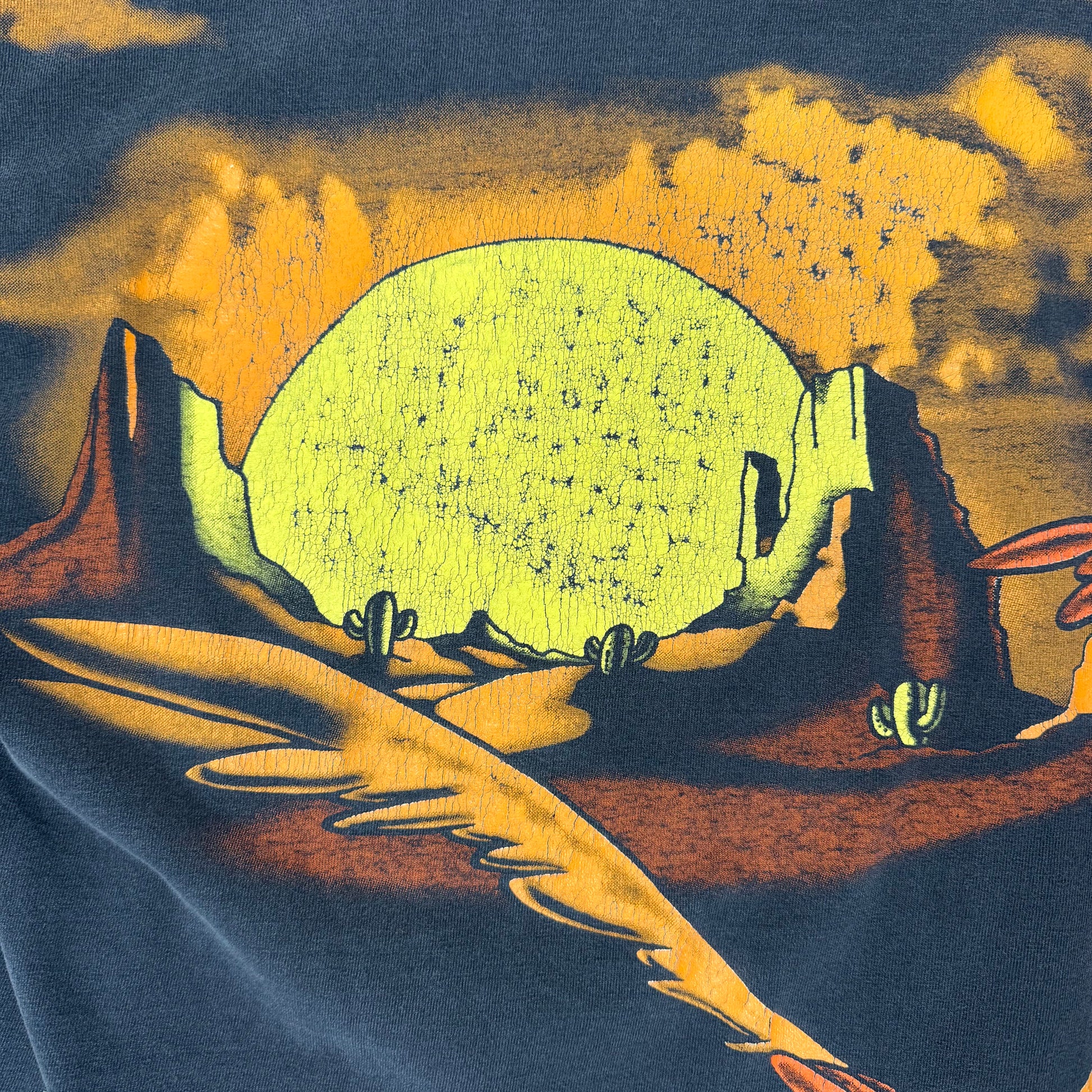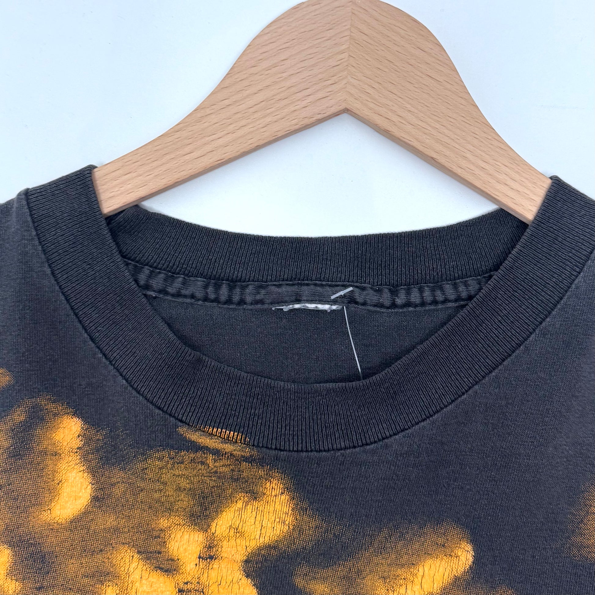 Heavy fading throughout and cracking in the print. There is a tiny hole on the right sleeve. Overall it is clean and in good vintage condition. There are no spots or major imperfections.